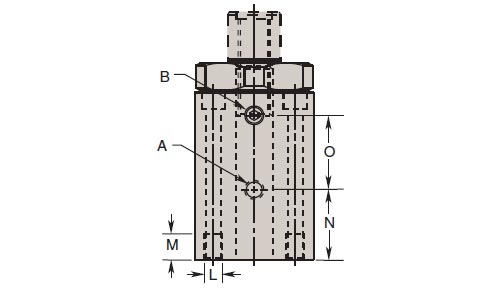 Our center-hole cylinders can be used as single or double-acting workholding devices. Mounting can be done in any of several ways: use the thru-holes for mounting from the top, use the tapped holes in the bottom for mounting from underneath, or secure with a single stud or rod through the center. The pistons are threaded to accept the optional crowned threaded inserts, used when the cylinder contacts the work directly.